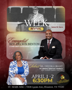 GUEST SPEAKER: Rev. William T. Glynn (Mt. Olive Missionary Baptist Church – Fort Worth)